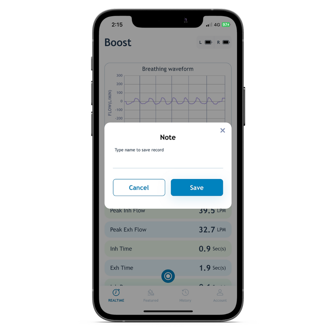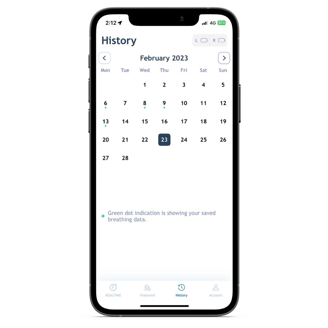 - Use real time screen to start monitoring your breathing.