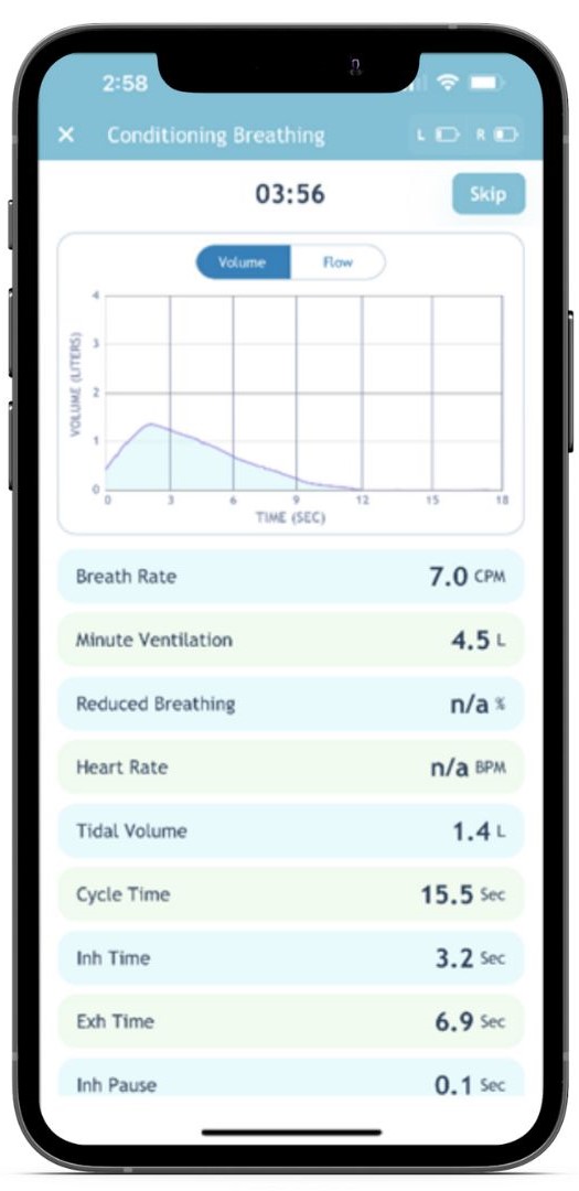 - Real-time feedback allows effective and reliable Reduced Breathing training.