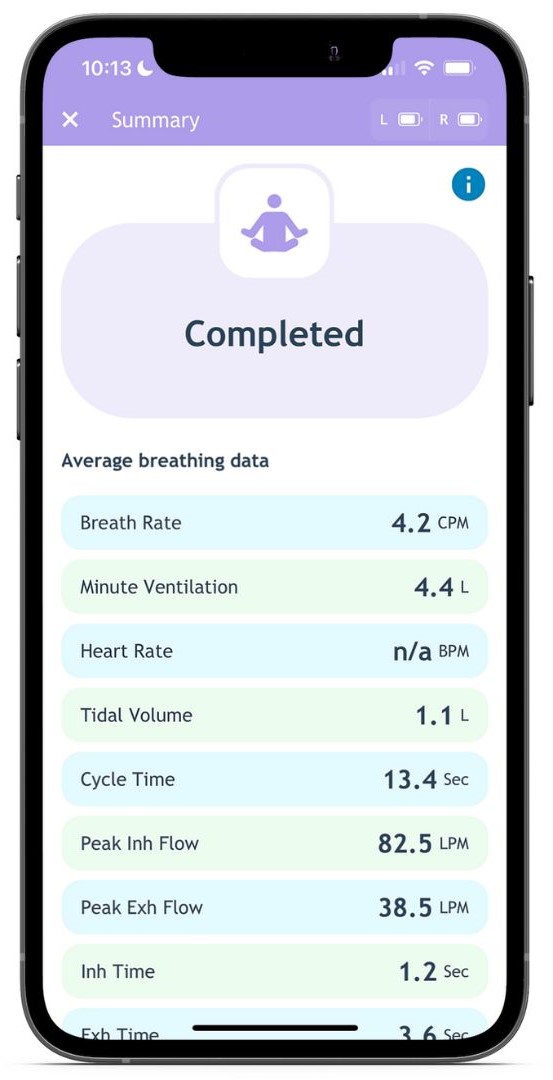 - Summary breathing report for meditation and exercises