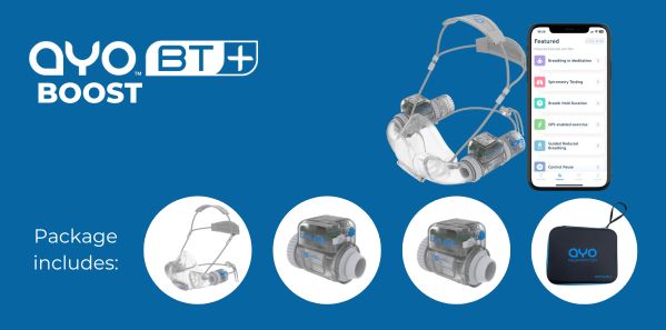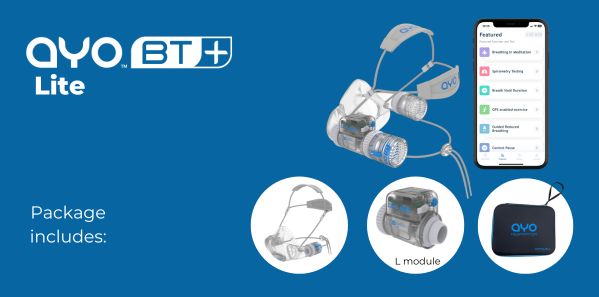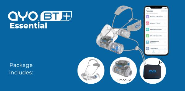 It consists of an entry-level breathing trainer AYO BT plus one or two measurement modules, with Apps available on iPhones and Android-based mobile phones. Thanks to the unique modular design, the BT+ can be configured and used for breathing measurement, asthma monitoring, Buteyko Reduced Breathing practicing, as well as diaphragmatic breathing training via nose offered by AYO BT.