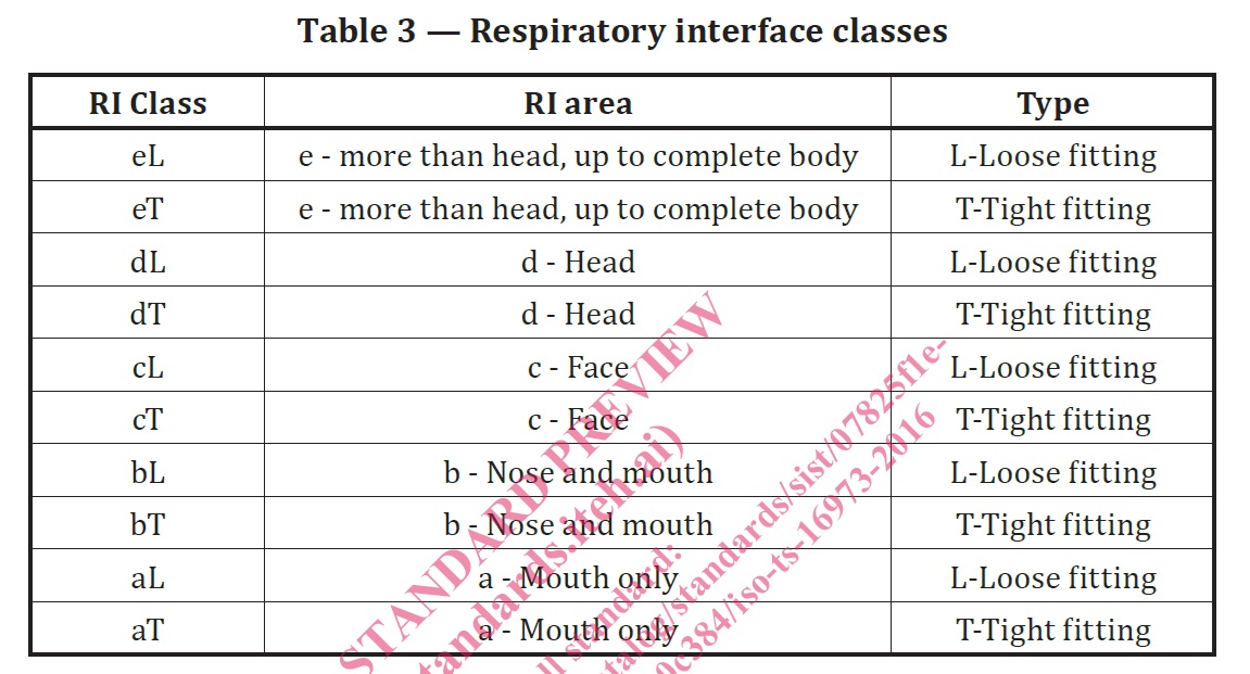 The new ISO respiratory standard ISO 16973-2023 specifies Respiratory Interface Classes with loose-fitting for a few types of facepieces as below: