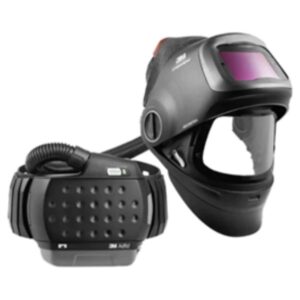 Currently, a popular option consists of a Welding Helmet with an Integrated Loose-fitting Powered Air-purifying Respirator. With this option, the helmet is specially made consisting of a loose-fitting visor for respiratory and face protection, a lens for eye protection, and an air entry at the back of the helmet to receive the air produced by a PAPR that is mounted at the back of the waist and secured by a belt, with filtered air being delivered via a hose to the helmet. A popular brand of this option is a 3M Speedglas G5-01 TW Heavy-Duty Flip-Up Welding Helmet plus an Adflo PAPR unit.