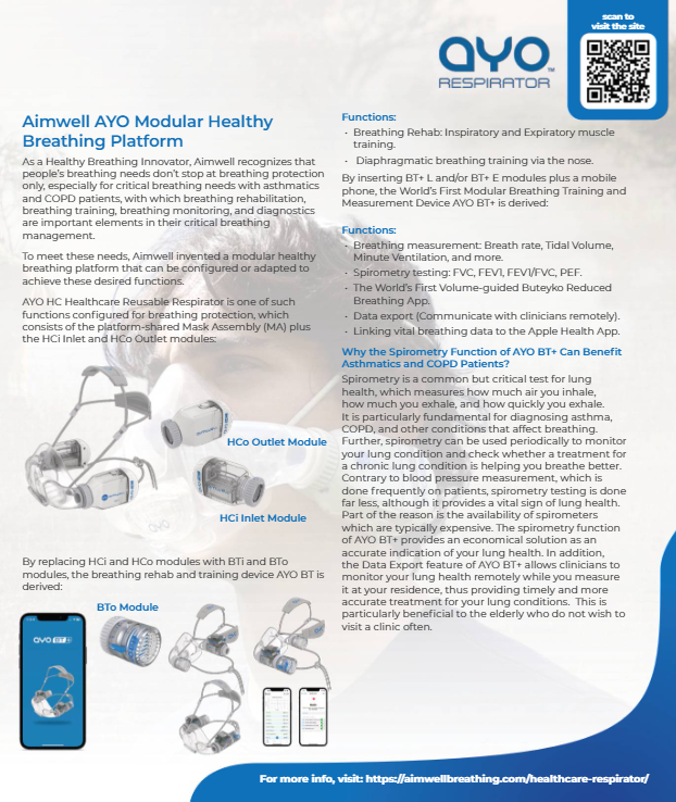 AYO BT+ is a novel breathing training and measurement respirator series invented for breathing training, measurement, and monitoring for asthmatics, sports, and general health. Read More.