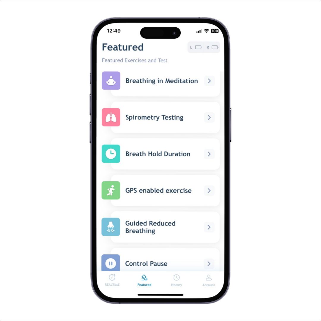 • Unique 3 in 1 device for breathing training, breathing measurement, and Spirometry testing.